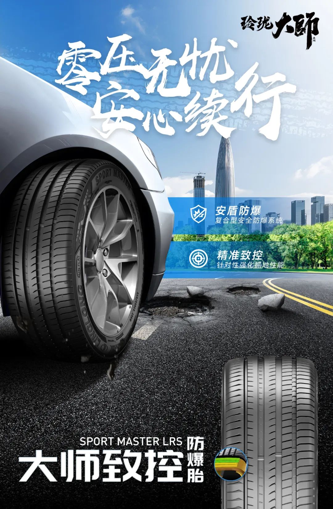 大师致控防爆胎:新玲珑大师系列首款超高性能乘用车防爆胎,专为中大型轿车、跑车打造,聚焦中国轮胎高端零售市场。通过革命性防爆技术与精准操控性能结合,为豪华车型用户提供“零担忧”的安全驾驶体验,重新定义防爆胎领域的本上化技术标杆。